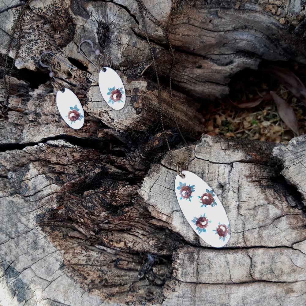 Enamel glazed jewelry (650º) with glass screen printing. The hook of the earrings is made of oxidized silver.